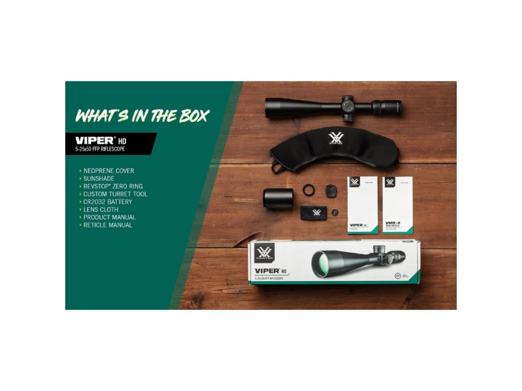 VORTEX VIPER® HD 5-25X50 FFP - nový model v triede puškohľadov, kríž s červenou bodkou v strede. Zabezpečí dokonalé výstrely, výnimočnú všestrannosť a optický výkon. Každý člen rodiny Viper® HD poskytuje vynikajúcu čistotu obrazu, rozlíšenie a ostrosť, cieľ viditeľný s ostrými detailami. Viper® HD sa tiež môže pochváliť vylepšenými funkciami pre bezkonkurenčnú presnosť na predĺžené vzdialenosti, pričom vyniká aj pri slabom osvetlení za svitu aj súmraku. Vlastnosti: