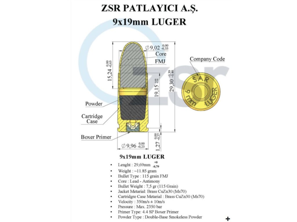 ZSR 9x19mm Luger FMJ 8,0g / 124grs